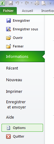 La première étape consiste à afficher l'onglet Développeur sur Excel. Pour ce faire, rien de plus simple. Cliquez en haut à gauche sur Fichier, puis Options (Excel 2010).